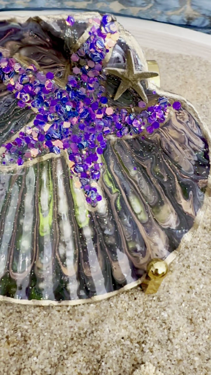 Purple Starfish Scallop Shell Trinket Dish