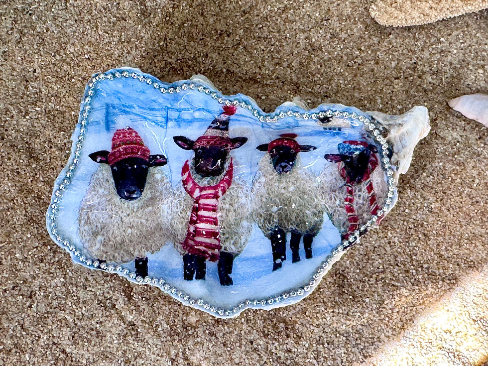 4 Little Sheep Oyster Shell Bowl with Spoon